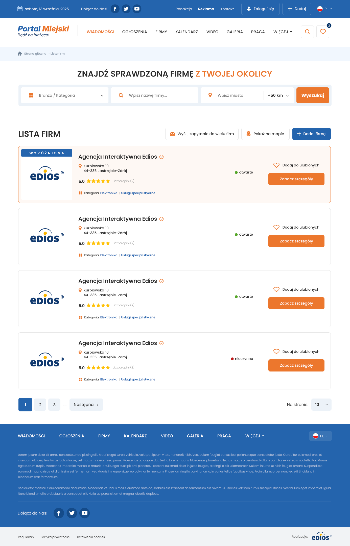 Portal informacyjny Branżowy lub miejski